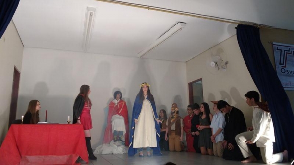 Encerrando as atividades do primeiro semestre de 2016, os alunos dos primeiros e segundos anos do Ensino Médio e do Técnico em Administração Integrado ao Ensino Médio da Etec Amim Jundi, de Osvaldo Cruz, apresentaram peças teatrais com a supervisão da Professora da disciplina de Artes Célia Aparecida de Lima Pereira.