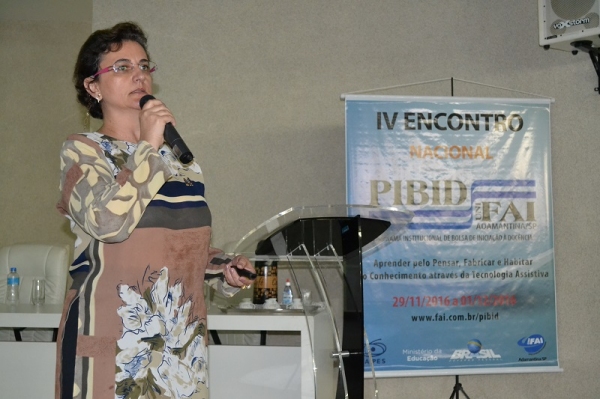 O IV Encontro Nacional Pibid/UniFAI foi aberto oficialmente com a conferência intitulada “Tecnologia Assistiva na Formação do Professor de Licenciatura”, ministrada pela Prof.ª Dra. Débora Deliberato, livre-docente na área da Comunicação Alternativa pela Faculdade de Filosofia e Ciências da Unesp de Marília, pós-doutora em Educação na Universidade do Estado do Rio de Janeiro (UERJ) e doutora em Ciências Médicas pela Universidade Estadual de Campinas e que atua como docente adjunto do Departamento de Educação Especial e do Programa de Pós-Graduação em Educação da Faculdade de Filosofia e Ciências do Câmpus de Marília da Unesp.