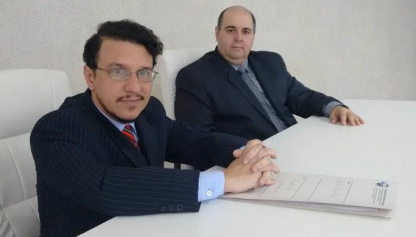 Reitor Paulo Sergio da Silva e vice-reitor Fábio Alexandre Guimarães Botteon foram empossados em 1º de julho de 2017 (Arquivo/UniFAI).