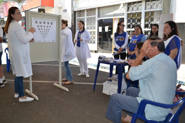 O evento teve atendimentos gratuitos para orientações nutricionais (Nutrição), acuidade visual (Enfermagem), orientação de prevenção às doenças transmitidas pelo mosquito Aedes aegypti e receita de repelente natural (Farmácia) e aferição de pressão arterial e glicemia capilar (Medicina).