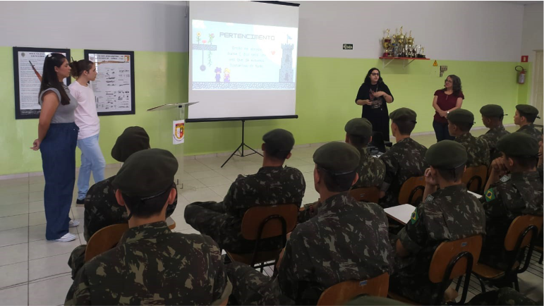 “O sargento Souto teve essa ideia e desejo em trazer atividades educacionais aos atiradores do Tiro de Guerra. Nós aceitamos a parceria e uma vez ao mês um curso vai até ao local desenvolver alguma atividade”, explica a coordenadora de extensão da área de Biológicas, Prof.ª Dra. Mayara Moura Alves da Cruz.