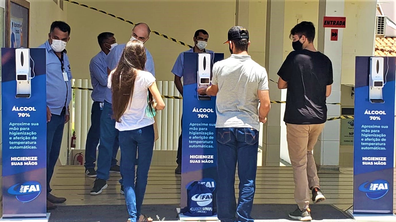 Tótens com álcool gel no local da prova (Divulgação/UnIFAI).
