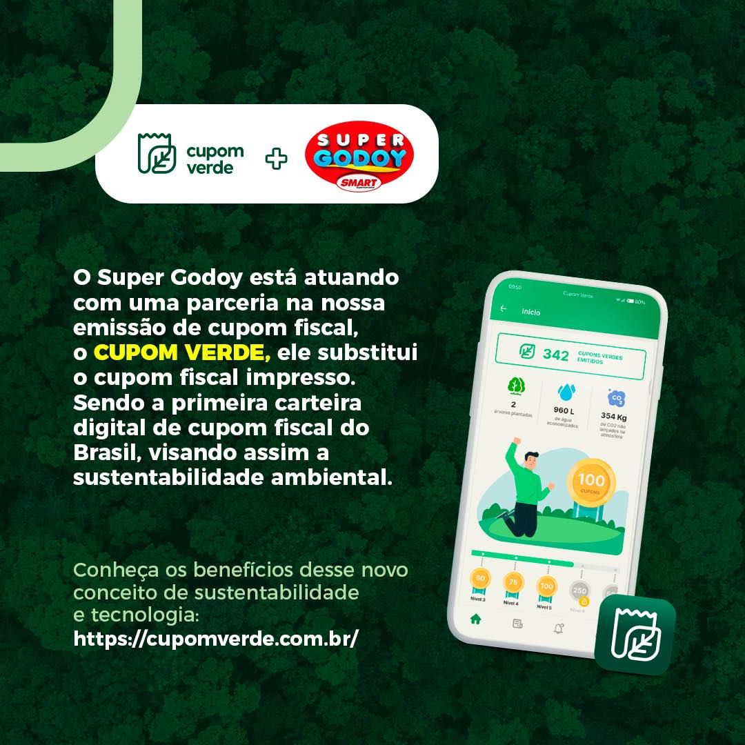 O Supermercado Godoy, de Adamantina, oferece aos seus clientes uma nova facilidade para emissão de cupons fiscais: o Cupom Verde. A iniciativa faz parte de um programa que cresce no país e visa a redução dos insumos para a produção do papel térmico utilizado na impressão de cupons, na hora da compra, e ainda busca reduzir o volume de lixo decorrente do descarte de cupons impressos, promovendo mais economia e menos impactos ambientais.