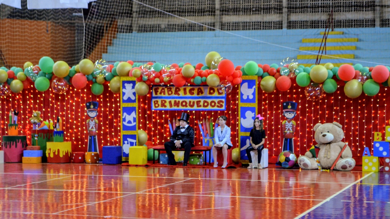 O musical “Fábrica de Brinquedos” foi dirigido pela professora Ana Queila Zanardo, o que mobilizou toda da equipe escolar, com cenário e decoração assinados por Heloísa Gavazzi.