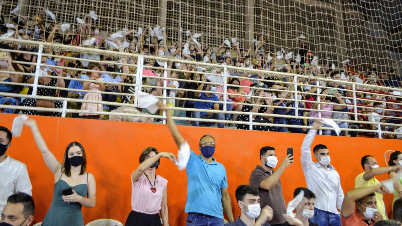 Seguindo as orientações de controle da pandemia da Covid-19, o público formado por pais e familiares, os estudantes, professores e toda da equipe escolar usaram máscaras de proteção facial.