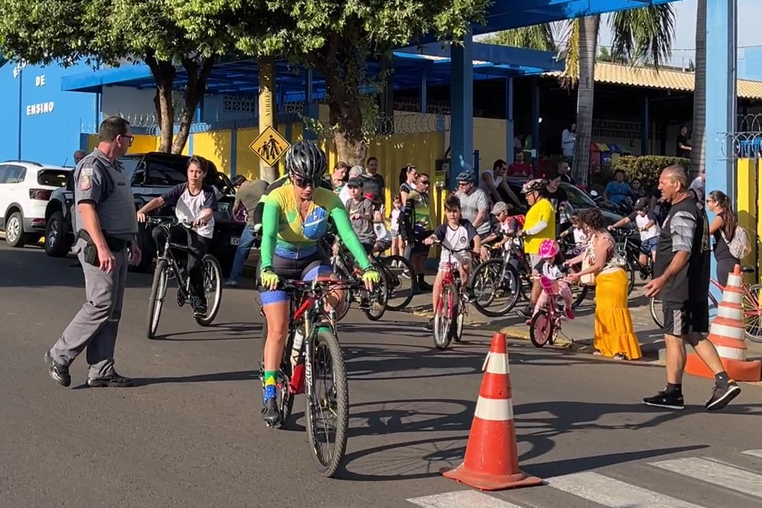 Passeio ciclístico movimentou a Escola neste sábado (Imagem: Siga Mais).