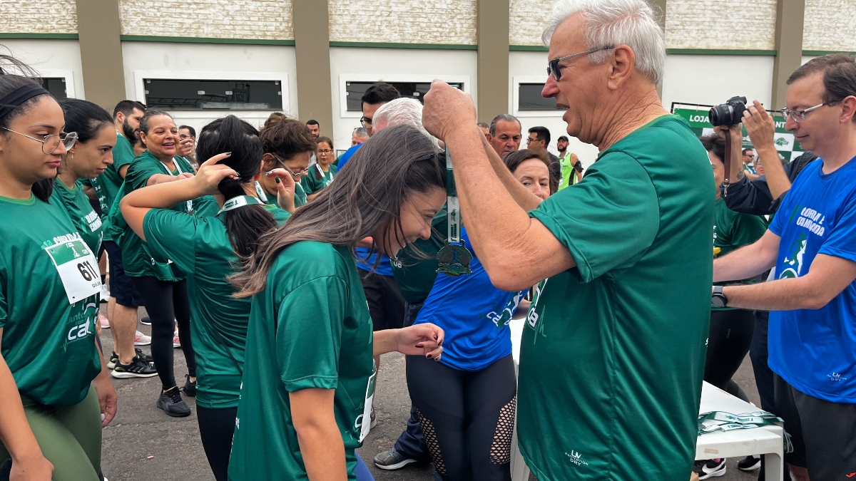 Entrega de medalhas aos participantes da corrida e camiinhada (Foto: Siga Mais).