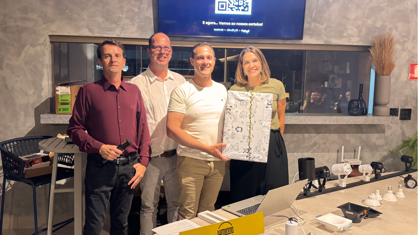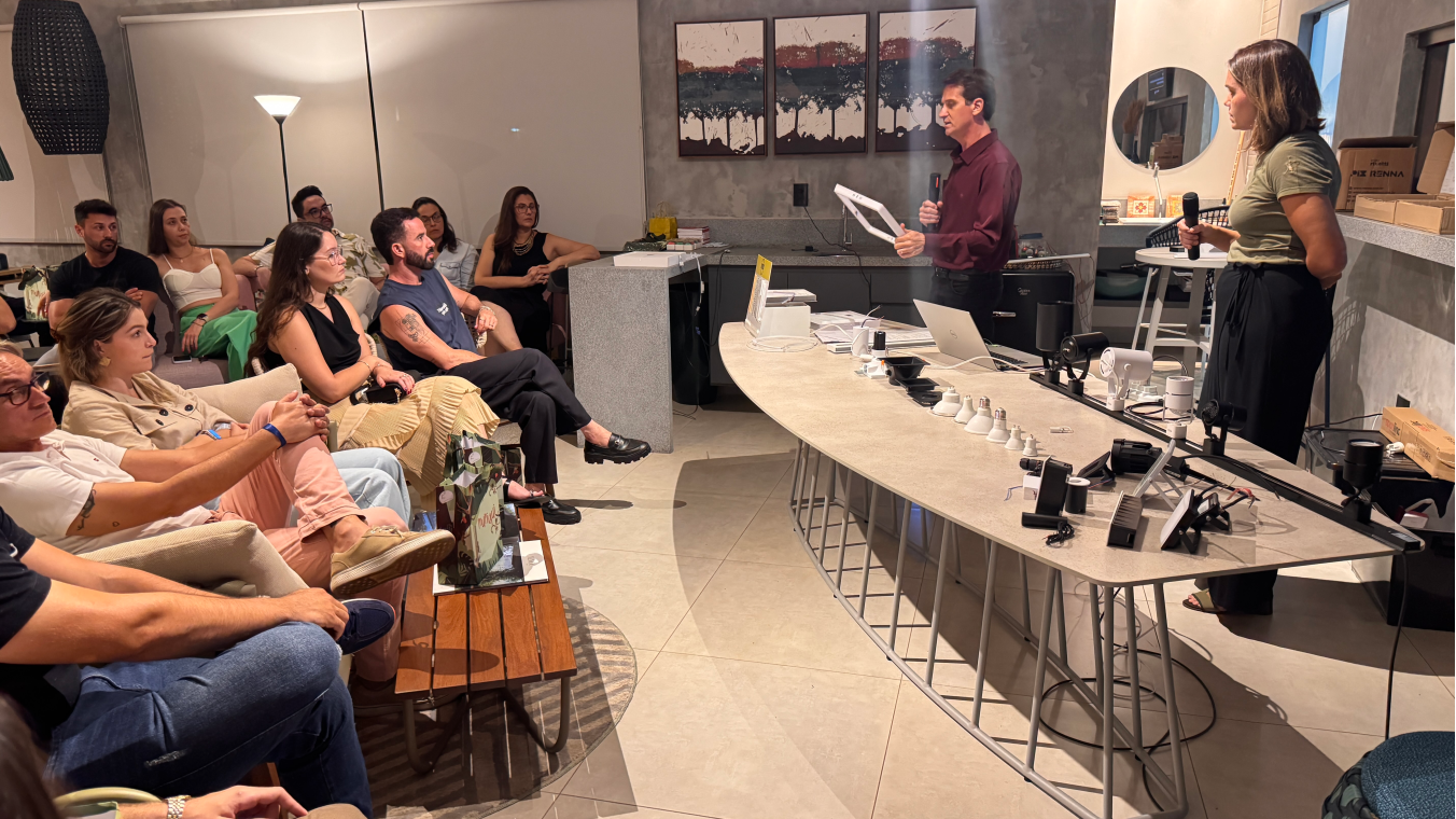 Realizado na Marchê + Conceitto, no Parque dos Pioneiros, o evento proporcionou um espaço de troca de experiências, aprendizado e confraternização, destacando a iluminação não apenas como recurso estético, mas também funcional e estratégico nos projetos arquitetônicos. A exposição principal foi conduzida pelo especialista em iluminação Mário Eduardo Ferrari, que compartilhou conhecimentos técnicos sobre o uso da luz, seus efeitos e aplicações práticas. Também participou do encontro a arquiteta e empresária Camila Tiveron, da Muriqui Ambientes Infantis e da CT Arquitetura. Ao final foi realizado um sorteio que premiou quatro participantes.
