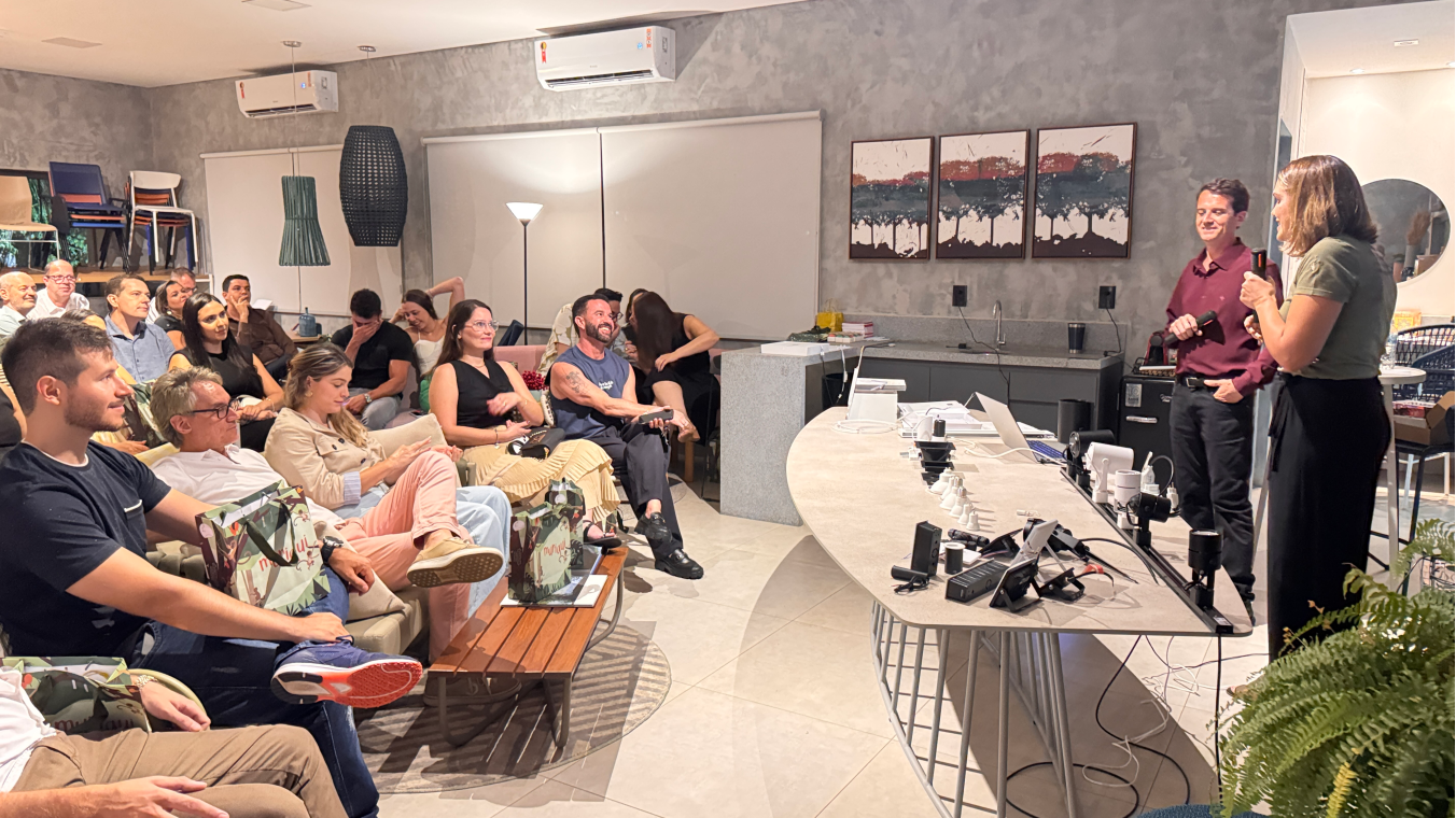 De acordo com Camila Tiveron, a proposta foi criar um momento de união da classe e de aprofundamento técnico em um clima leve e colaborativo. “Hoje é um dia muito especial para nós arquitetos, e a nossa proposta foi de unir a nossa classe nesse encontro, onde trouxemos o tema da iluminação e acessar mais informações técnicas de conhecimento da luz e todo o conteúdo, juntos numa troca, num bate-papo bem gostoso, e confraternizar também esse encerramento de ano”, afirmou. Ela também destacou o significado do período para as empresas parceiras e deixou uma mensagem aos colegas de profissão: “Para nós, da Marchê + Conceitto e da Muriqui, foi um ano muito especial, e que 2026 seja um ano iluminado para nós. Parabéns a todos os arquitetos, todos os profissionais maravilhosos”.