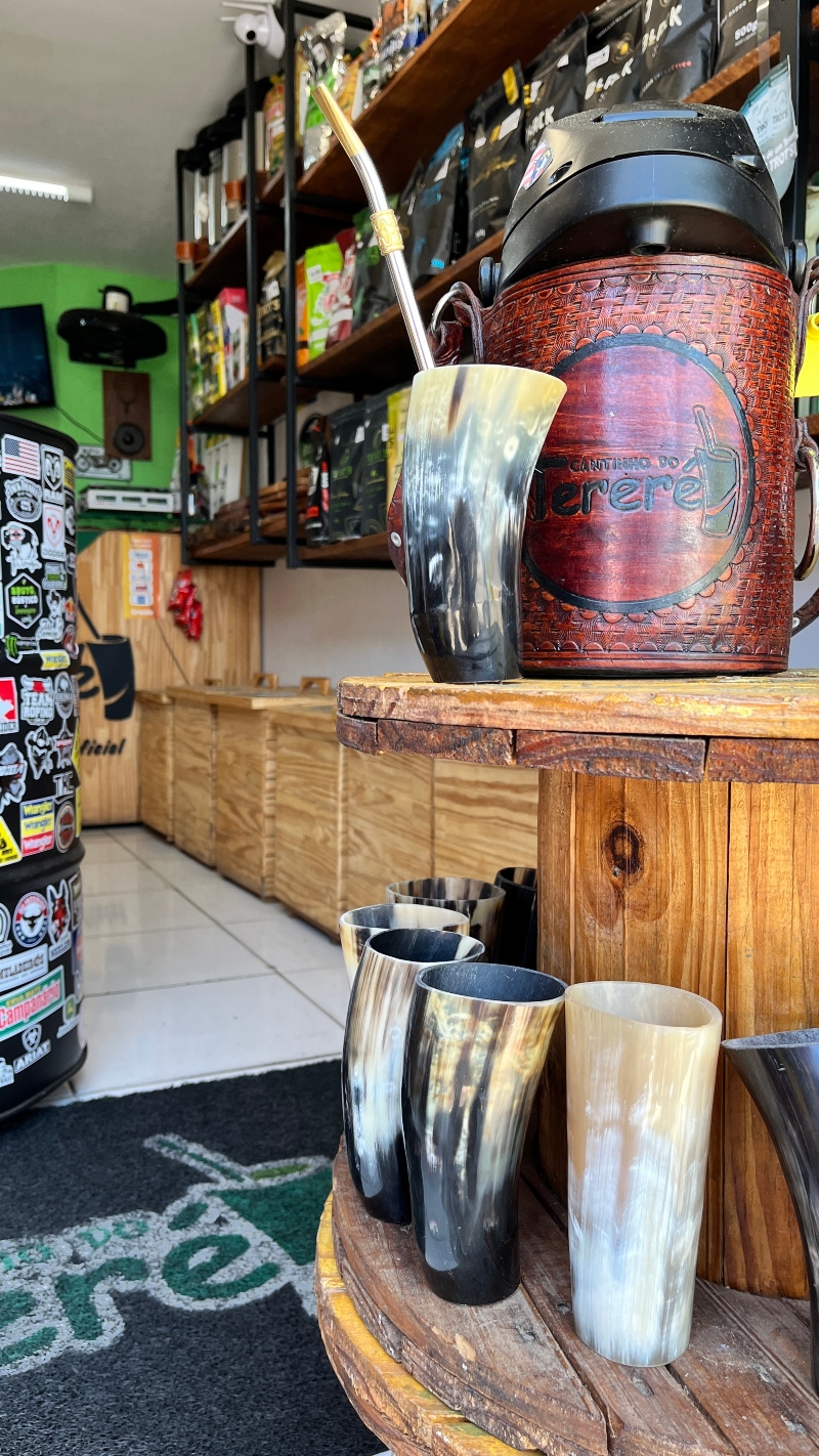 A bebida tereré é obtida a partir da mistura da erva-mate com água gelada. Nesse processo, três acessórios são peças-chave entre seus consumidores: copo, bomba e garrafa térmica. Para atender de maneira integral os fãs da bebida, a loja Cantinho do Tereré conta com amplo estoque desses materiais.