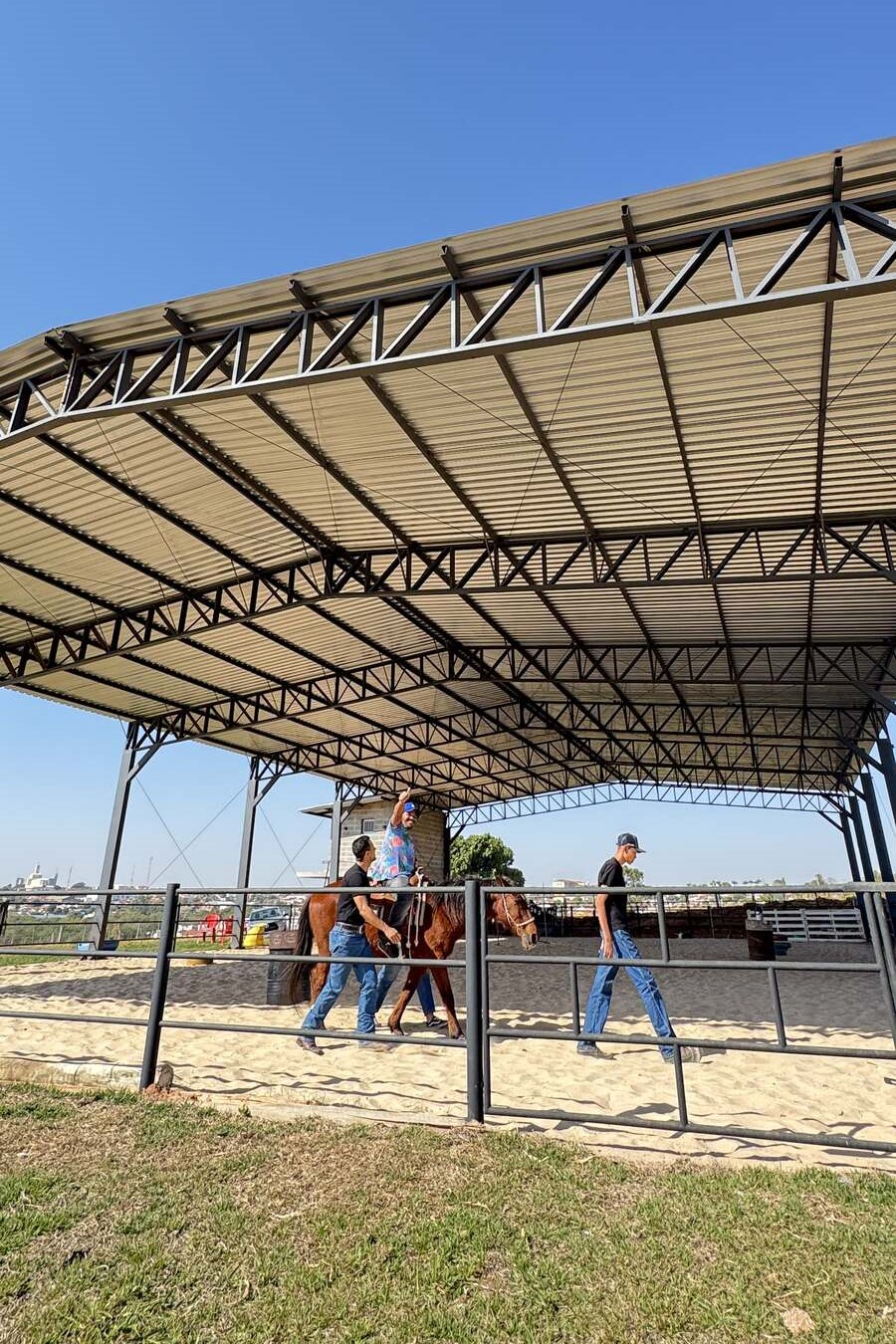 Estrutura coiberta para a prática da equoterapia com mais conforto (Siga Mais).