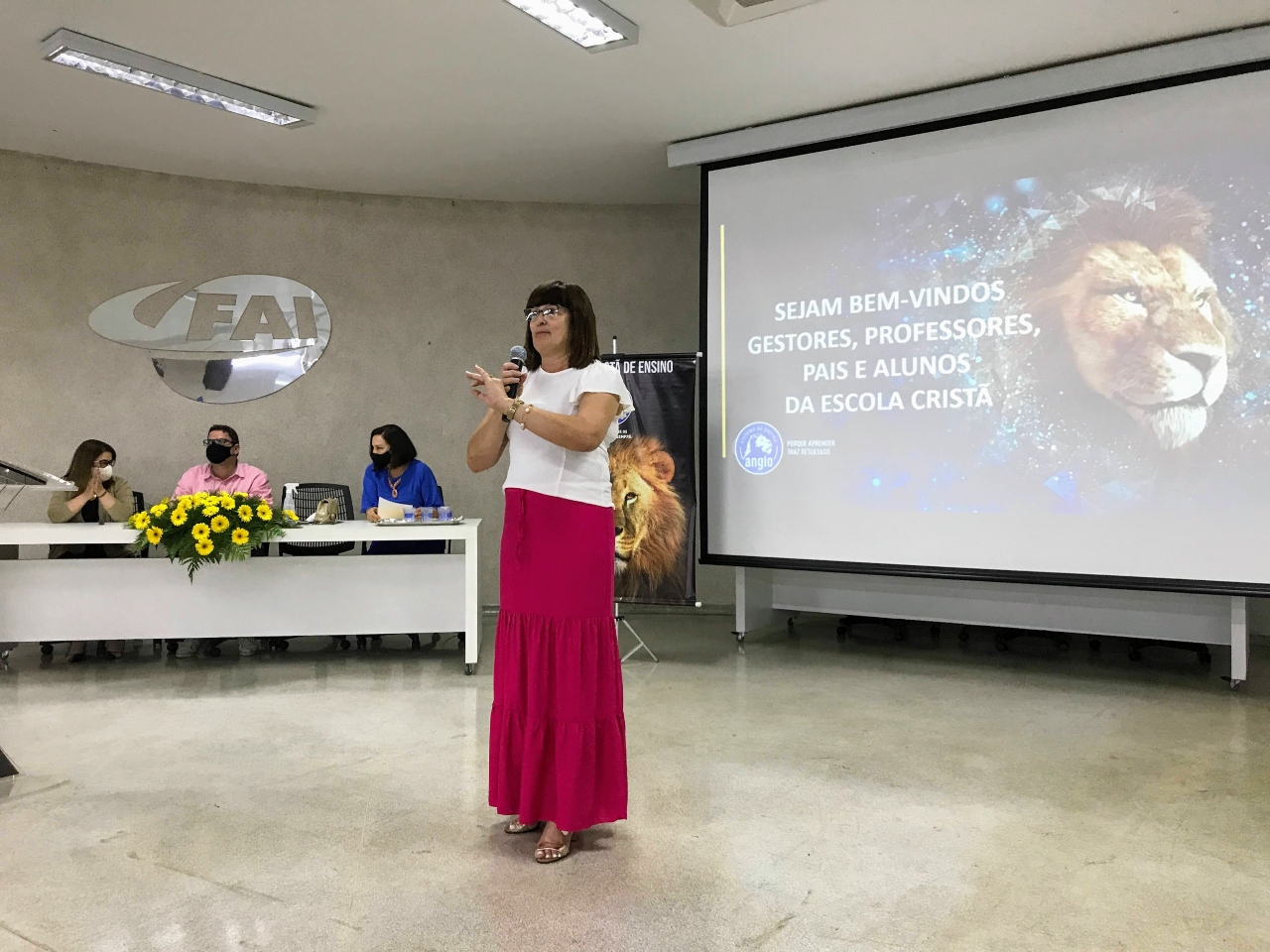 Em sua fala, a dirigente educacional destacou que a Escola Crista tem 23 anos de história, iniciada com 82 alunos. Hoje conta com 550 estudantes matriculados, de Adamantina e cidades vizinhas, o que a torna uma unidade de ensino consolidada, de abrangência regionalizada.