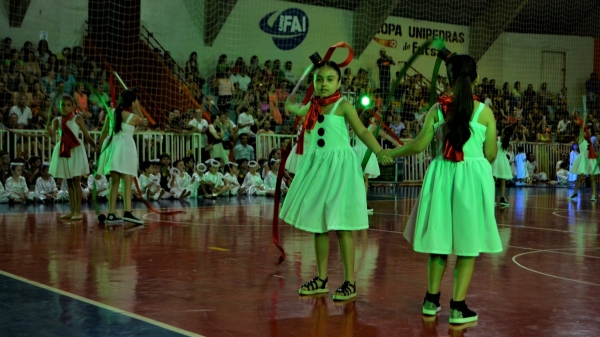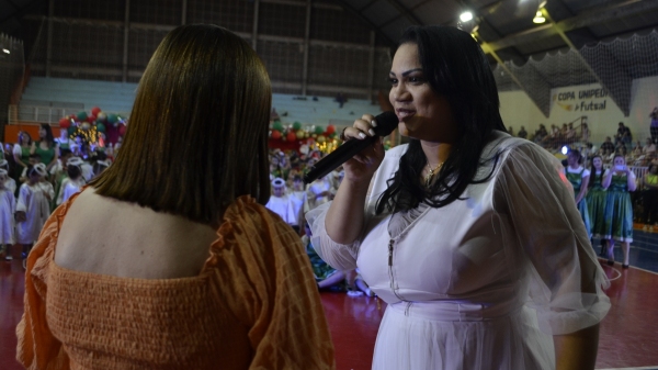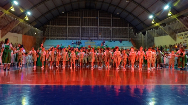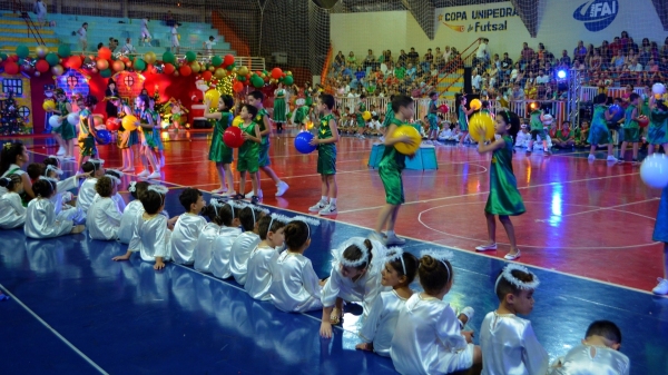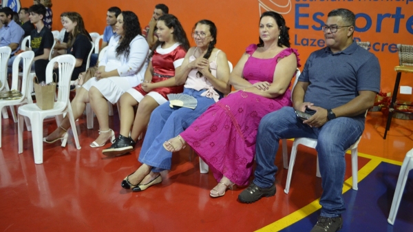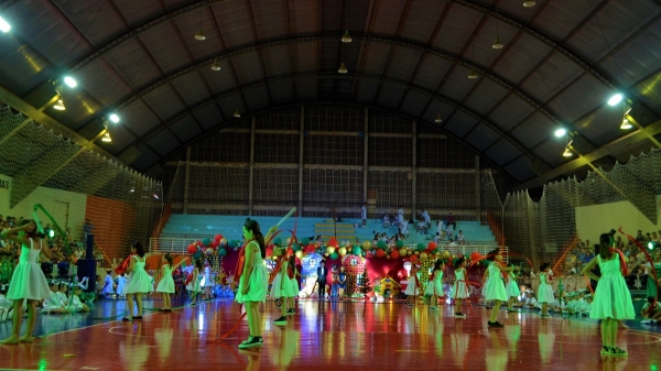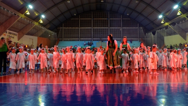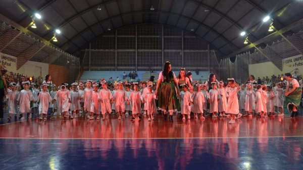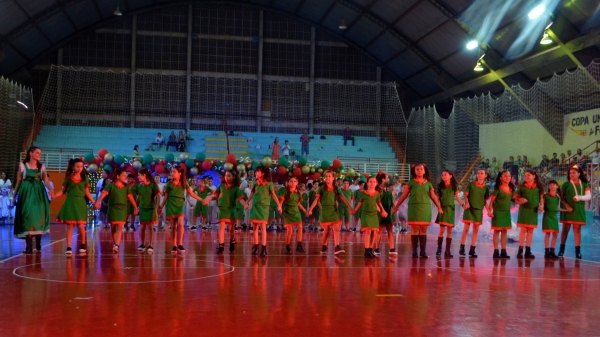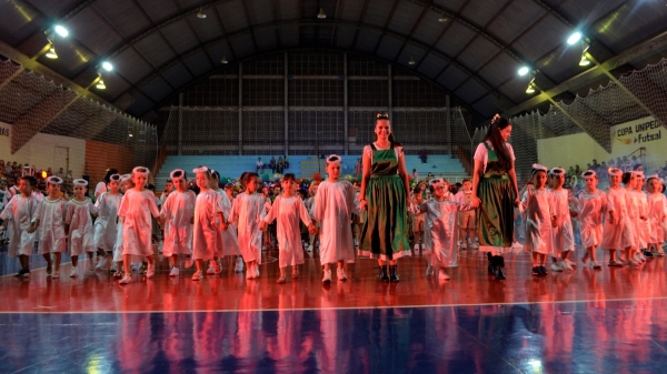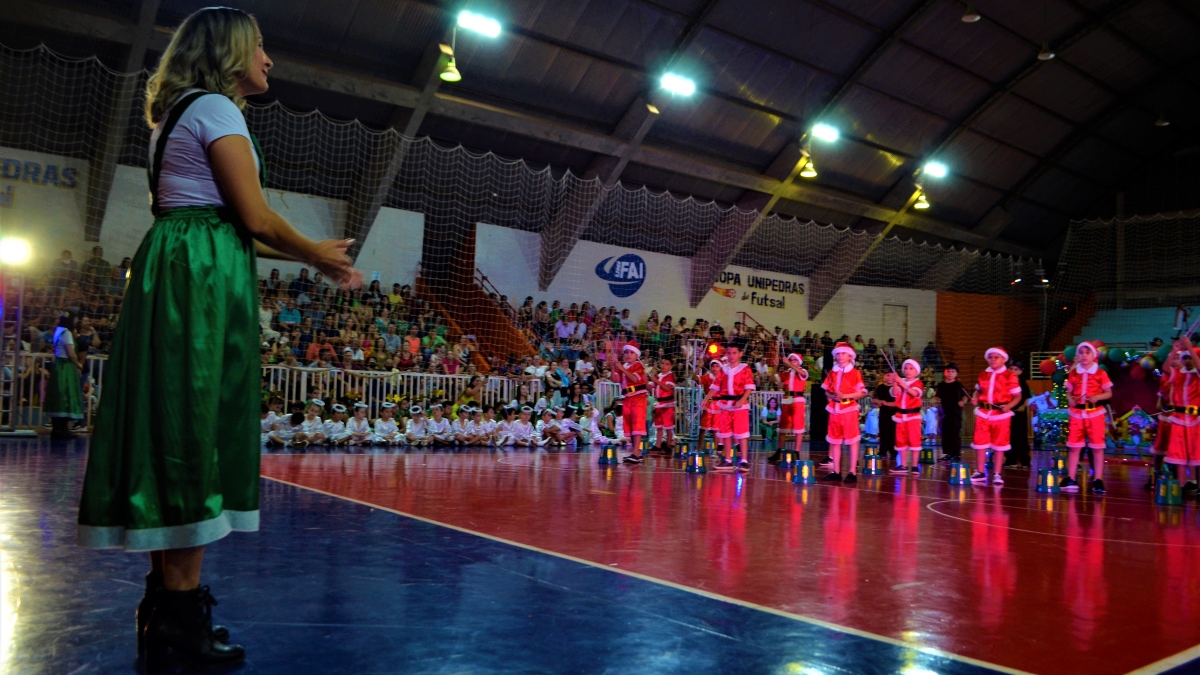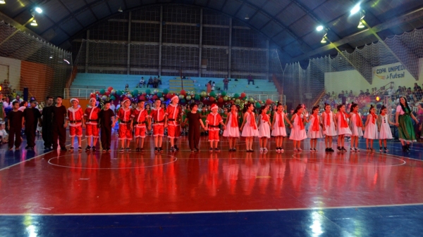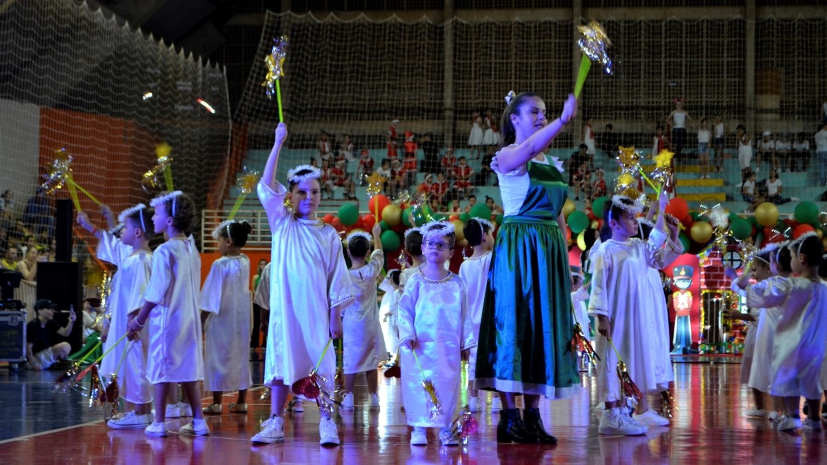 O público, formado sobretudo por pais e familiares dos alunos da educação infantil e ensino fundamental, lotou o Ginásio de Esportes e aplaudiu a apresentação das crianças.