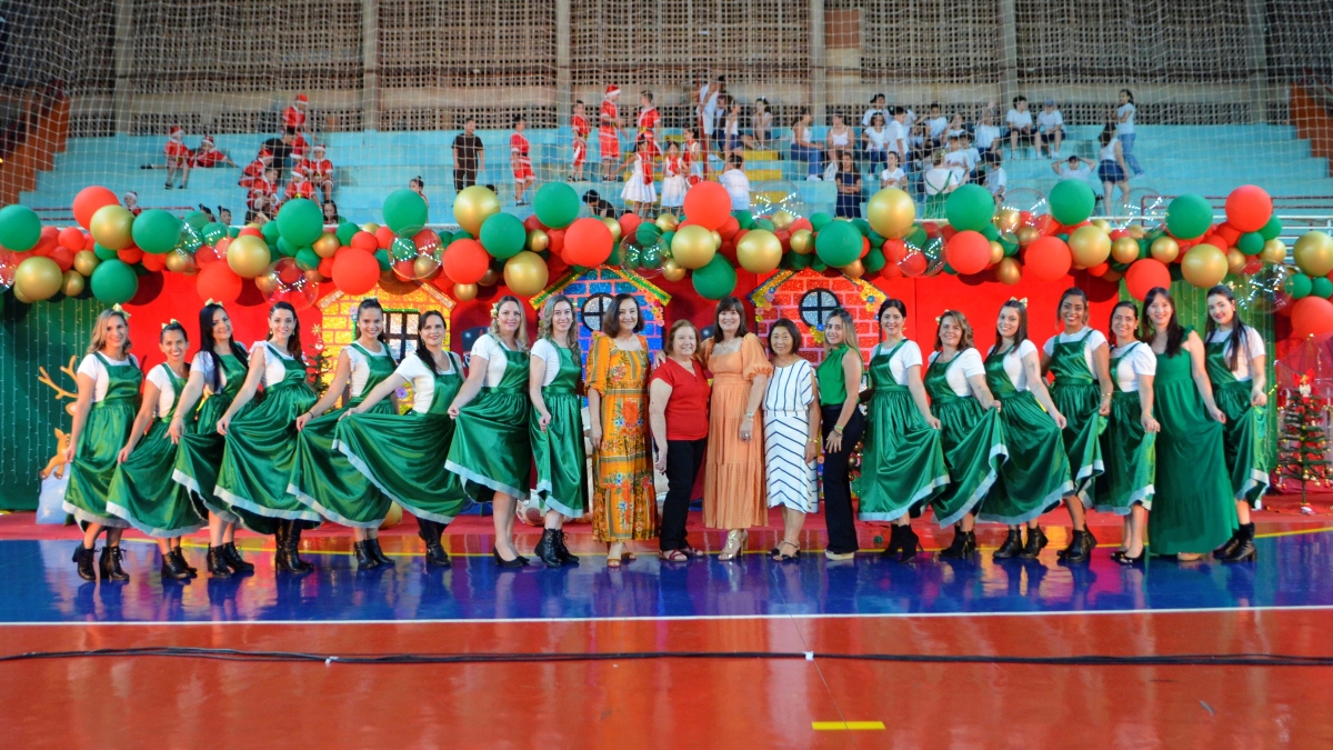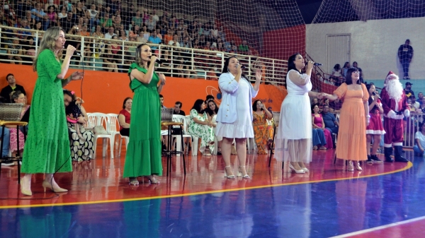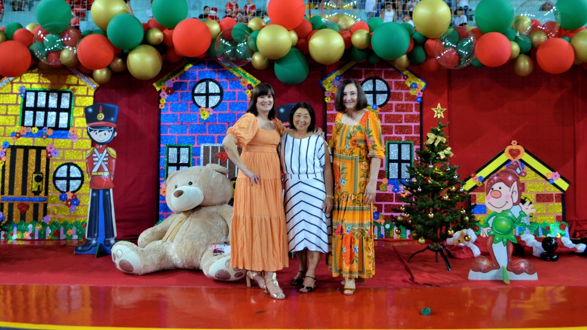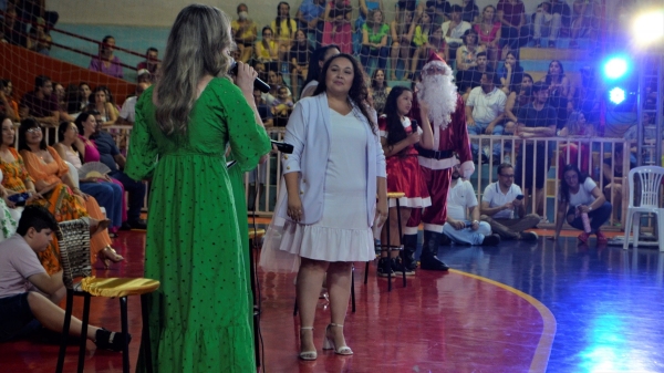 O encerramento teve ainda a participação de quatro mães de alunos, e um aluna, que cantaram ao vivo uma canção de Natal.