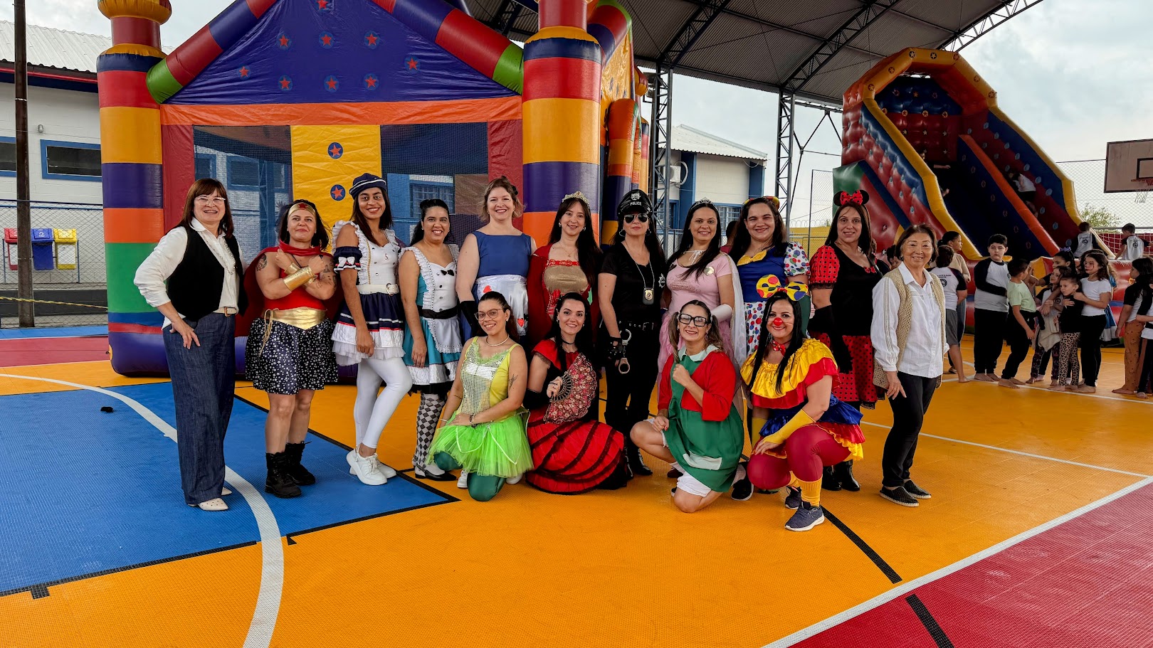 O pátio da Escola se transformou em um espaço festivo, com brinquedos infláveis, pula-pula, pipoca, algodão doce e muita música. Os professores também entraram no clima, participando fantasiados e interagindo com os estudantes, o que deixou o evento ainda mais divertido e colorido. Assista conteúdo especial sobre a programação.