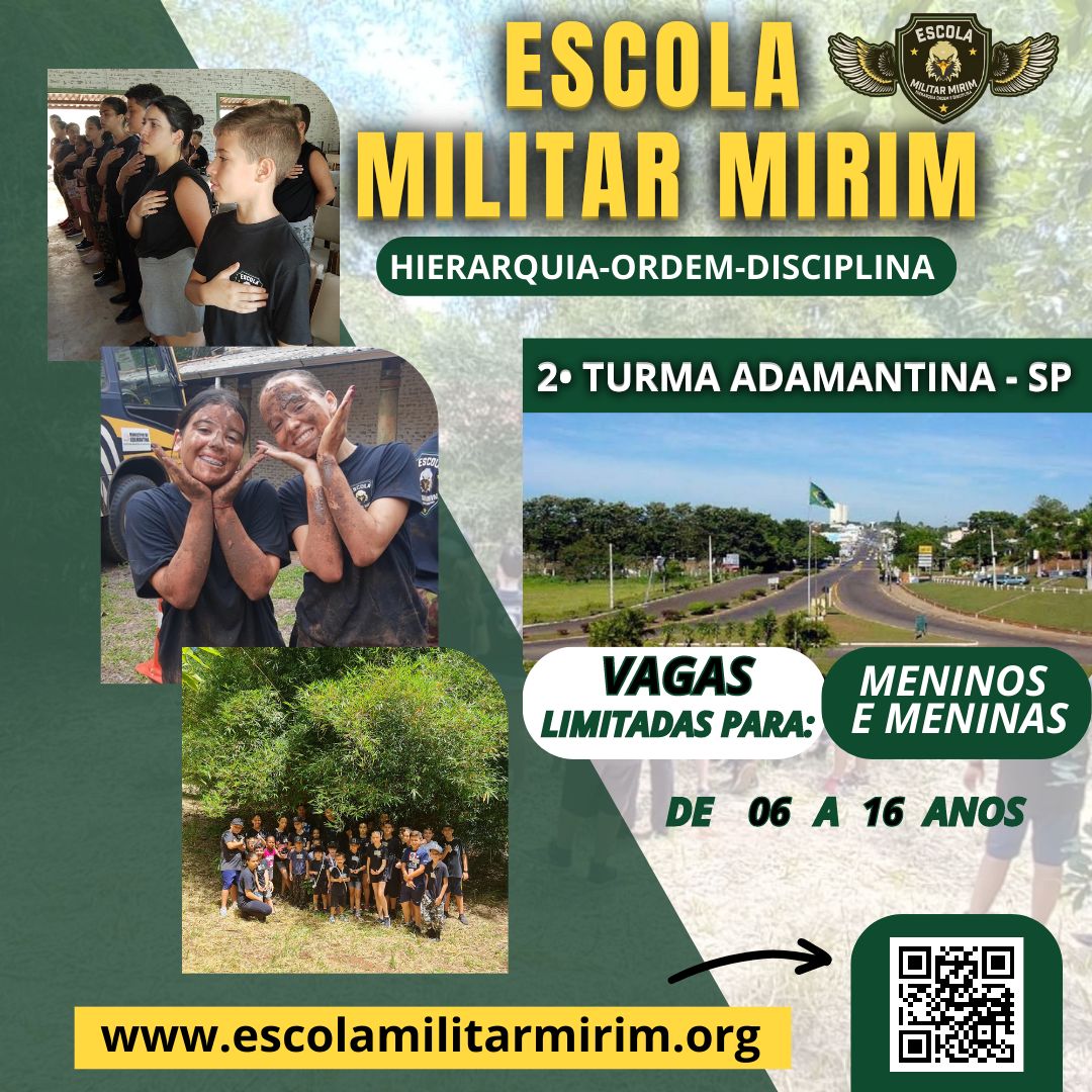 Se você quer participar com a 2º turma da Escola Militar Mirim de Adamantina faça logo sua inscrição pois as vagas são limitadas. Acesse o site e faça sua inscrição em www.escolamilitarmirim.org.