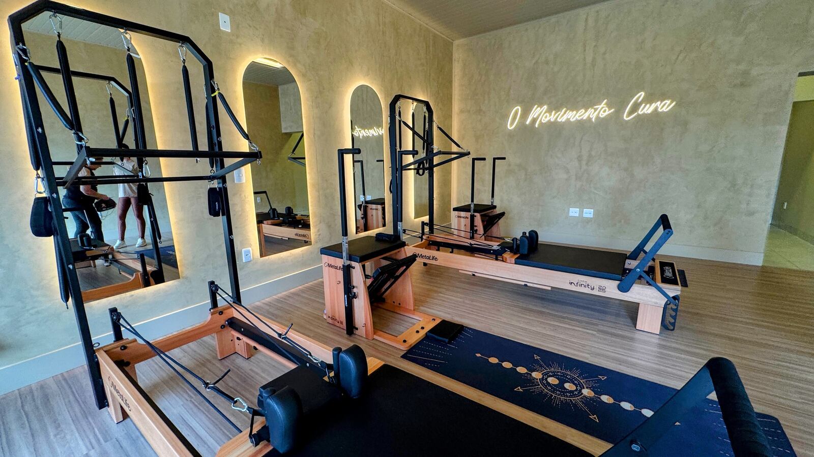 Além das técnicas, o ambiente do Prana Conceito foi pensado para fugir da aparência clínica e hospitalar. “Quis criar um lugar acolhedor, que inspirasse o aluno a dar o seu melhor, com um estilo diferente do tradicional estúdio de fisioterapia, tudo branco e frio. Aqui, a pessoa se sente motivada e bem recebida”, diz Tatiane. O projeto foi desenvolvido pela arquiteta Gabriela Tiveron, que também desenvolveu a proposta do espaço de Pilates que tinha na capital paulista.