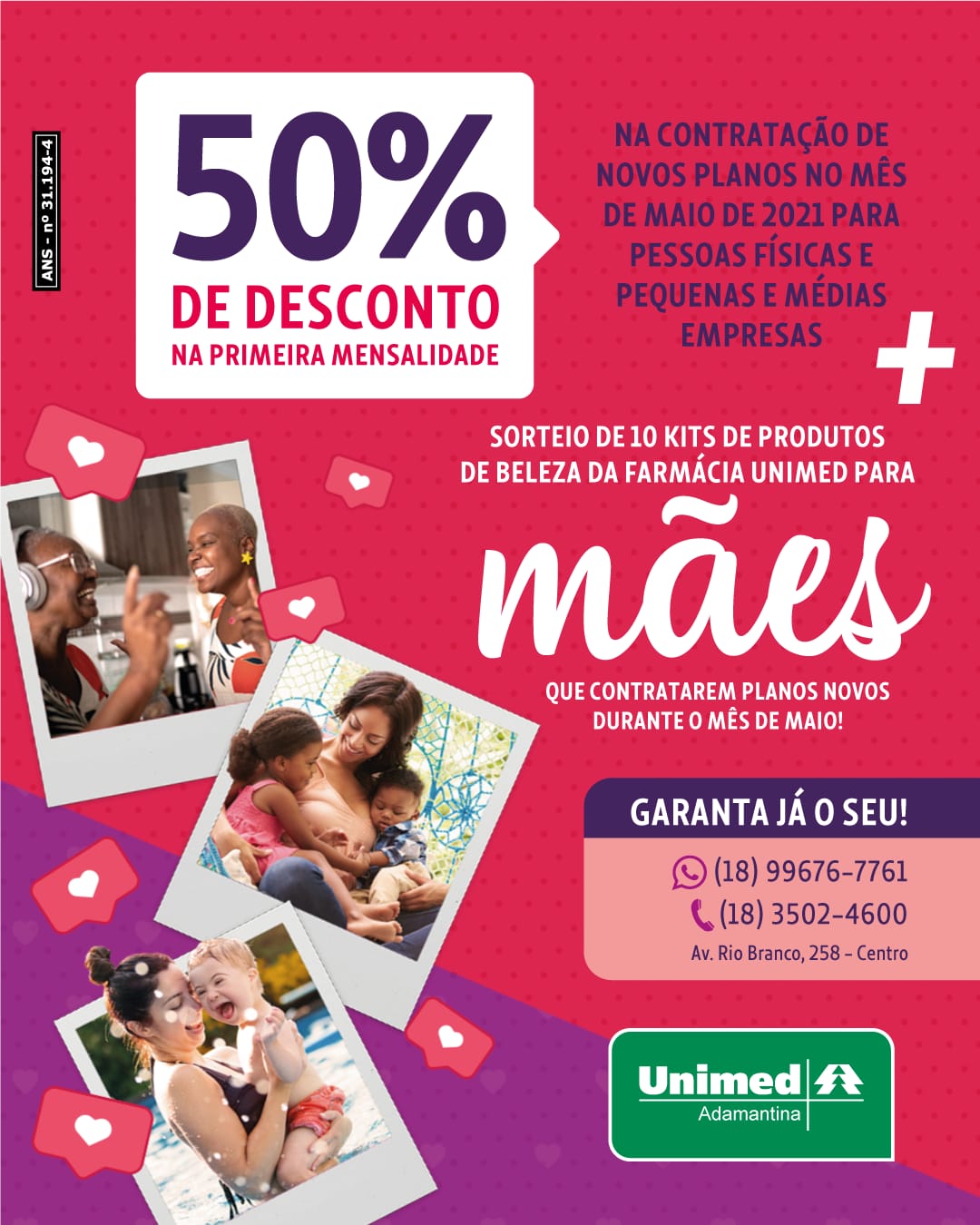Neste mês de maio a Unimed Adamantina está com duas ações especiais para novas contratações de planos de saúde, em suas diferentes configurações, para pessoas físicas e clientes empresariais (pequenas e médias empresas).