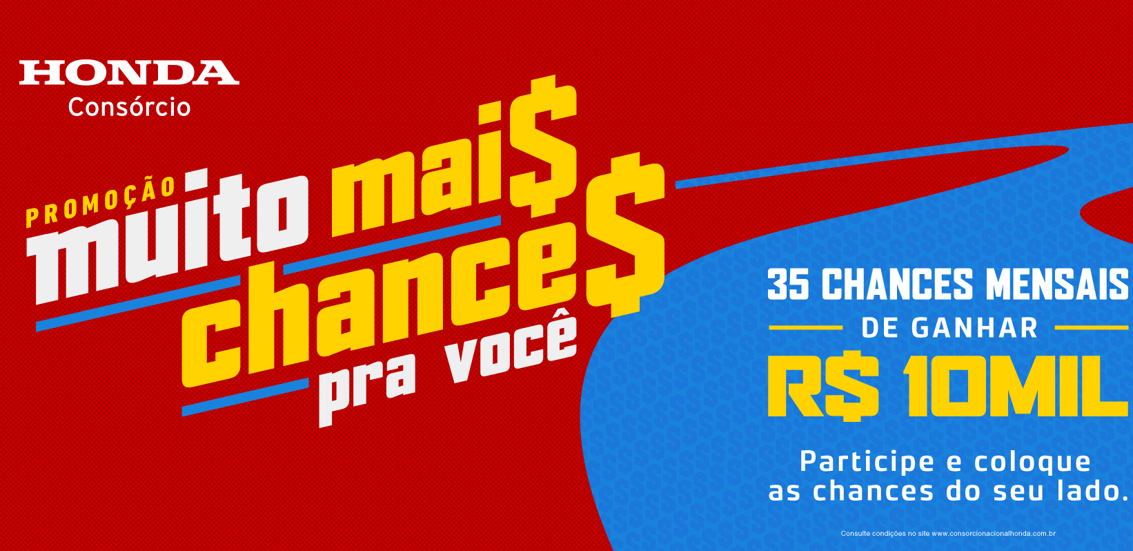 A promoção “Muito Mais Chances Pra Você” oferece oportunidades de premiação enquanto o cliente desfruta das vantagens de participar do Consórcio Honda. Para concorrer, é necessário ser cliente, manter as parcelas em dia e ter participado de pelo menos uma assembleia.