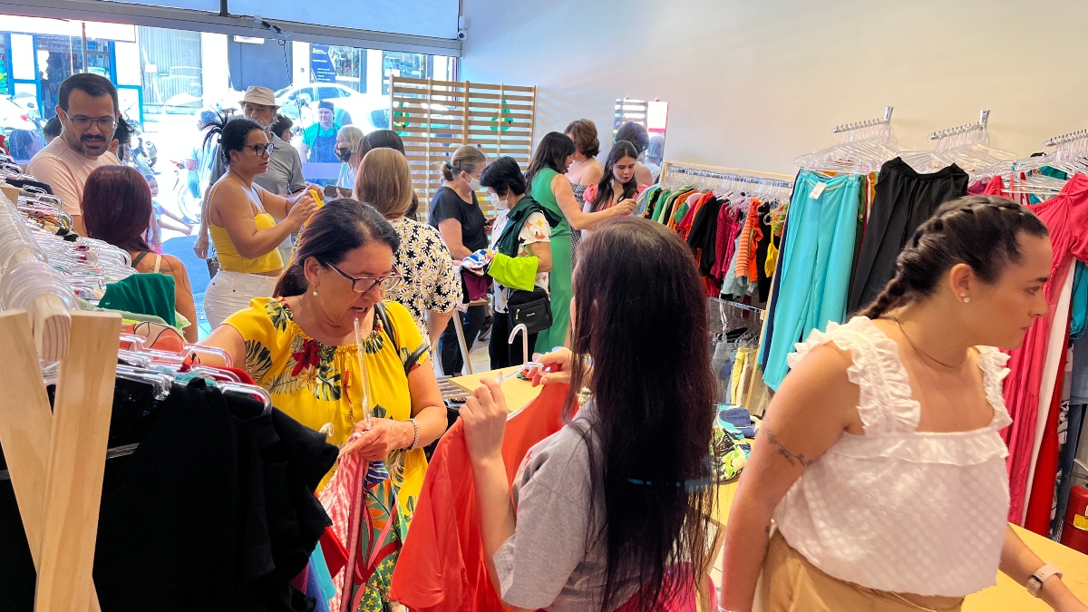 O público pode encontrar vestidos em diferentes estruturas, blusas, conjuntos, camisetas e uma infinidade de peças.
