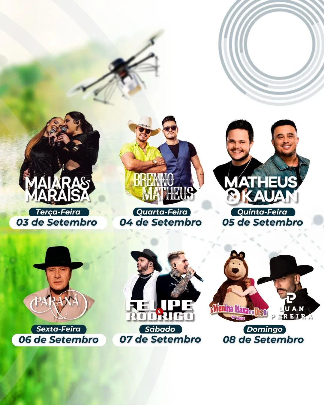 O camarote do Supermercado Mituo garante conforto e uma visão privilegiada dos shows. A grade do evento tem Maiara & Maraísa (dia 3, terça-feira), Brenno & Matheus (dia 4, quarta-feira), Matheus & Kauan (dia 5, quinta-feira), Paraná (dia 6, sexta-feira), Felipe & Rodrigo (dia 7, sábado) e Luan Pereira (dia 8, domingo).