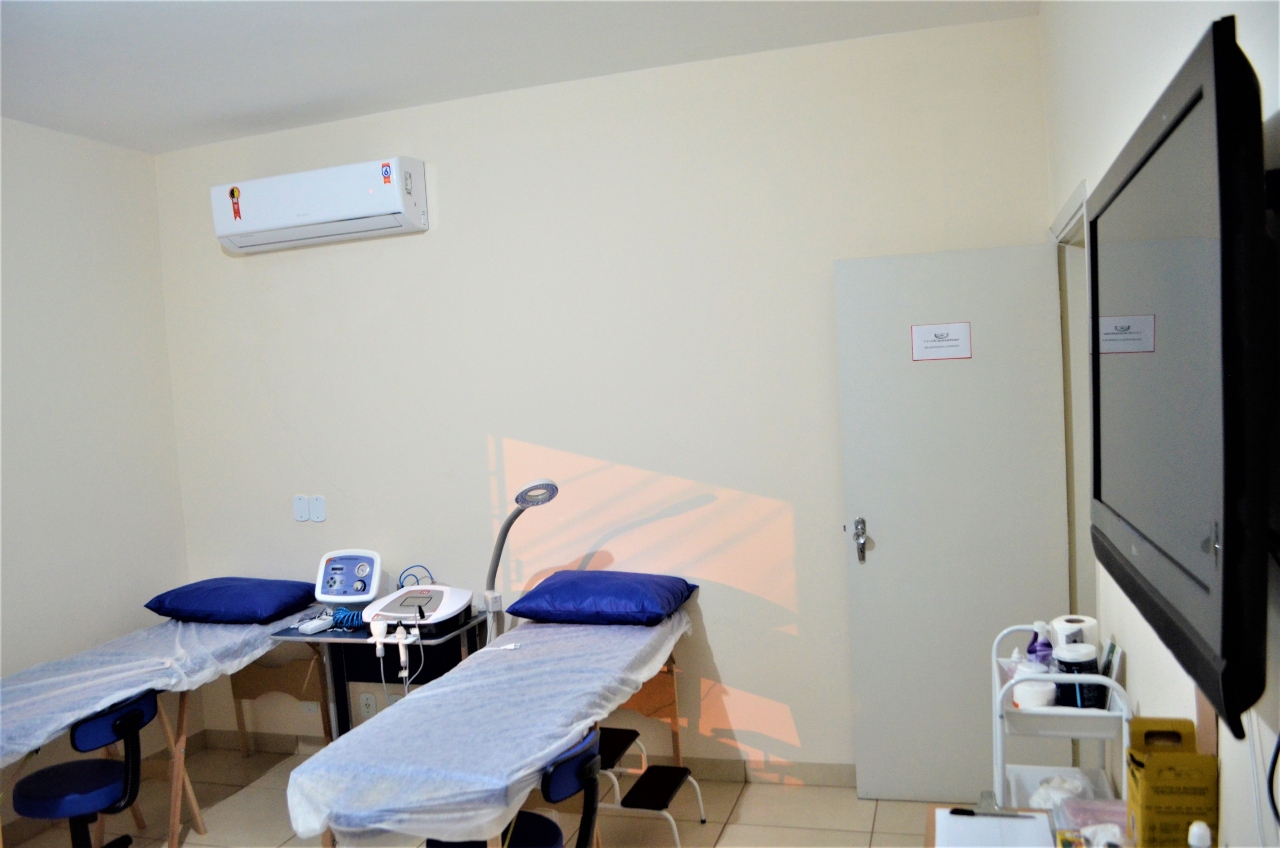 No espaço, os estudantes dos cursos de saúde e bem-estar encontram um laboratório completo e moderno, com todo o instrumental necessário para realizar as aulas práticas e fazer atendimentos, fundamentais durante a graduação híbrida, em formato inovador, oferecida pela instituição e ensino.