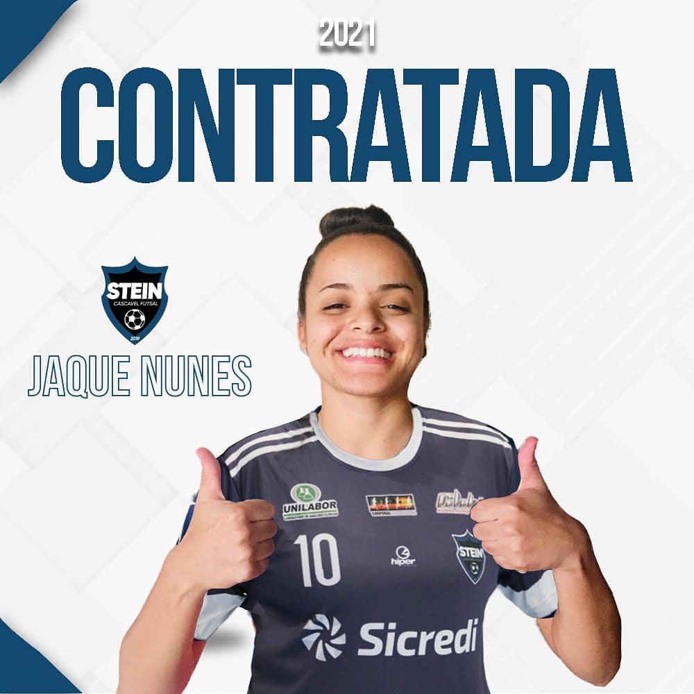 Aos 20 anos, a adamantinense Jaque Nunes foi anunciada no final de dezembro como uma das contratadas para equipe de Stein Futsal, de Cascavel (PR). Ela joga futsal desde os nove anos de idade e já coleciona ampla bagagem profissional, após disputar por equipes de Santa Catarina. Agora, passa a integrar o elenco da equipe paranaense, que no ano passado venceu a Liga Nacional de Futsal Feminino (LNFF).