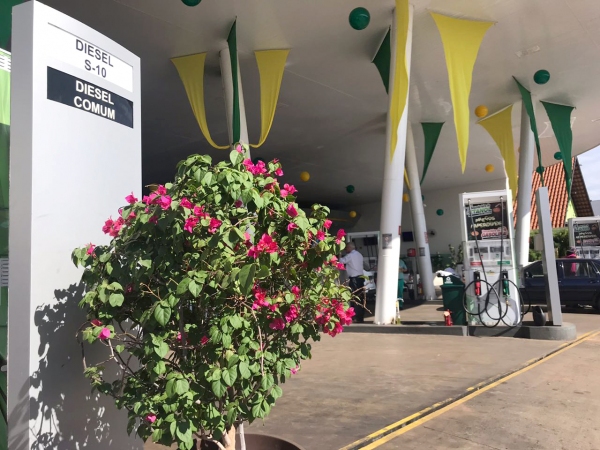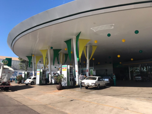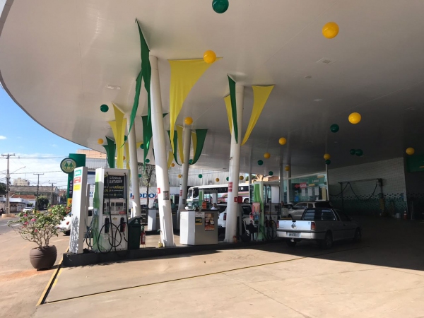 Espaço do Auto Posto Cocipa ganha decoração temática e se veste de verde e amarelo.
