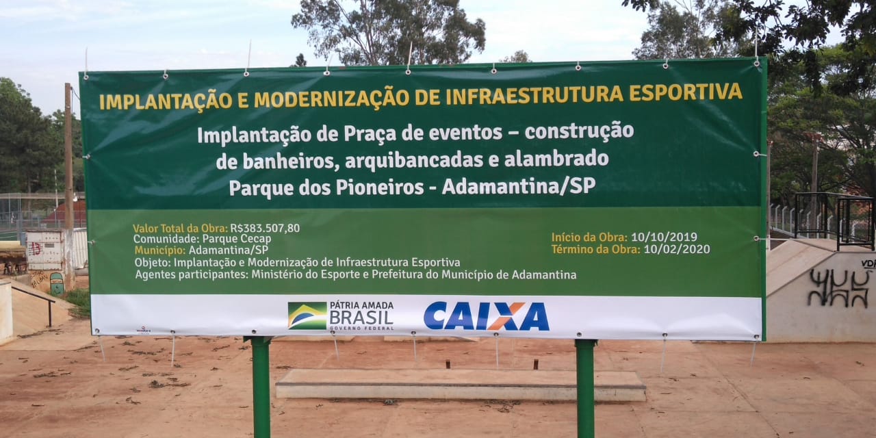 Segundo o Portal da Transparência, do Governo Federal, o Convênio (SIAFI/SICONV) Nº 786214/2013, assinado em 6 de novembro de 2013, garantiu a destinação de R$ 250 mil, do extinto Ministério dos Esportes (hoje Ministério da Cidadania), acrescidos de contrapartida final de R$ 133.507,80, pela Prefeitura de Adamantina, para a execução das obras, o que permite alcançar o valor total de R$ 383.507,80. A gestão municipal, à época, era do então prefeito Ivo Santos, e a Secretaria Municipal de Esportes, Lazer e Recreação era gerida pela professora Marlene Ribeiro Esteves. (Continua após a publicidade...)