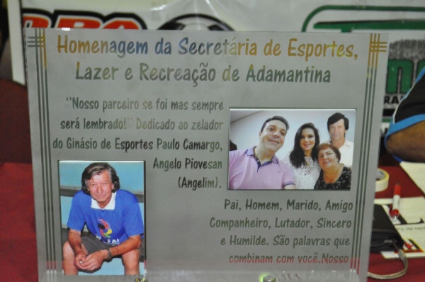 A Copa Unipedras/UniFAI de Futsal homenageou, neste ano, o ex-funcionário do Ginásio de Esportes, Ângelo Piovesan, o “Angelin”, já falecido. A homenagem foi dirigida à viúva de Angelim e a seus filhos, Naiara e Anderson (Durla).