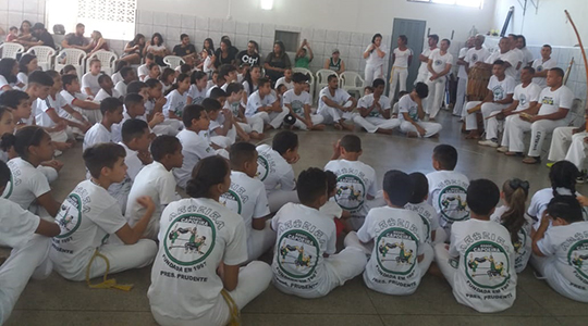 Em Presidente Prudente, 45 crianças de Adamantina participam de evento de capoeira.