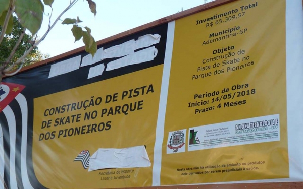 Foram iniciadas as obras para construção da pista de skate no Parque dos Pioneiros, com investimentos do Governo do Estado de São Paulo e contrapartida da Prefeitura de Adamantina. O valor do convênio é de R$ 65.309,57 e o prazo de execução da obra é de 4 meses.
