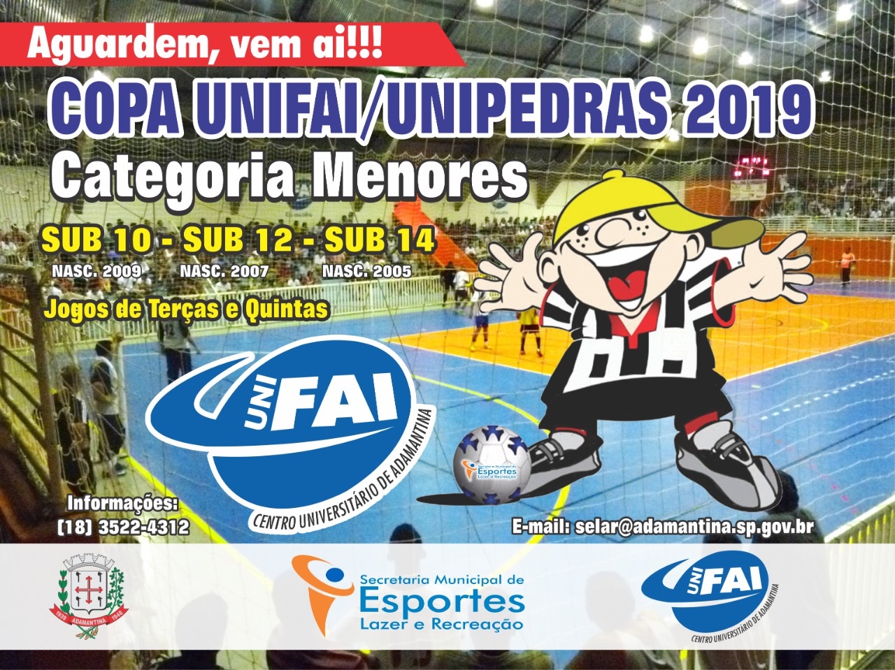 Neste ano, a grande novidade será a edição da Copa UniFAI/Unipedras categoria menores, voltada aos atletas das categorias sub-10 (nascidos em 2009), sub-12 (nascidos em 2007) e sub-14 (nascidos em 2005).