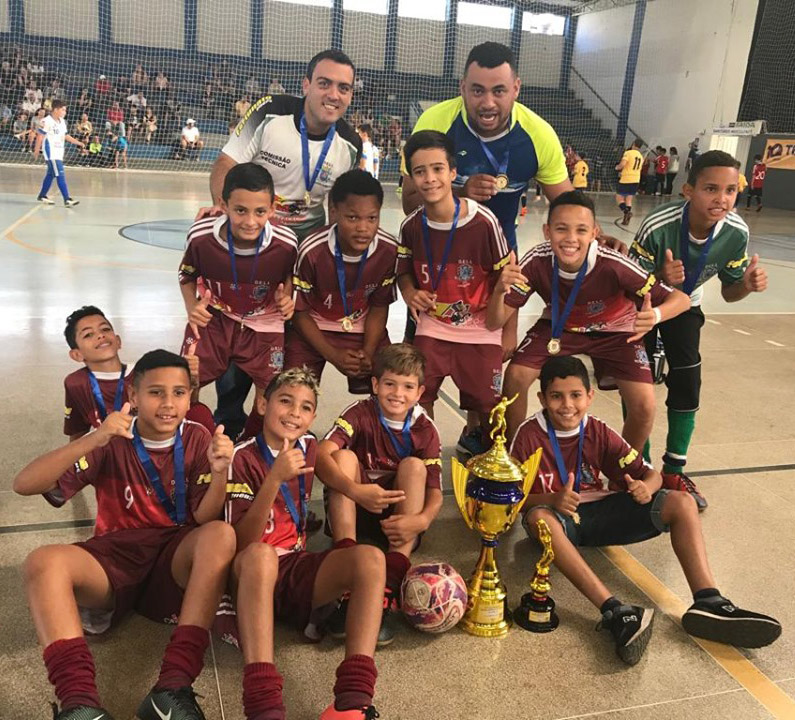 Atletas de Lucélia comemoram a vitória na 22ª Copa Regional "Alcides Mattiuzzi" de Futsal, com a categoria sub-12 (Da Assessoria).