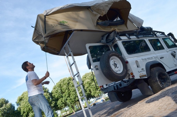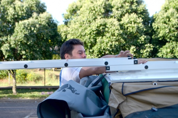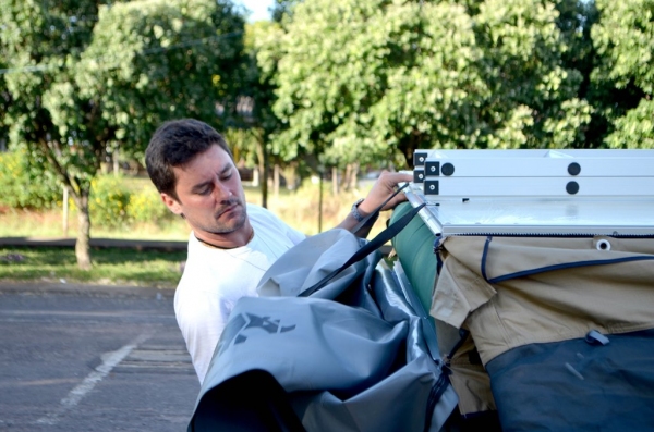 Ainda na área interna do veículo, um tampão se transforma em uma cama. Já o bagageiro externo, na parte superior, ganhou uma estrutura de barraca, de fácil montagem, onde também poderá dormir.