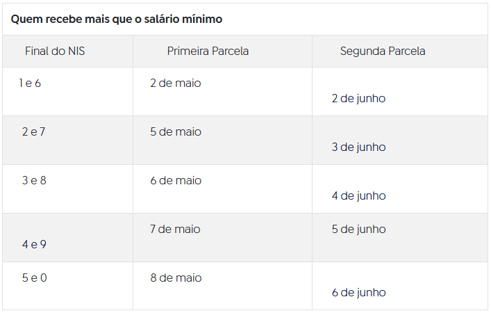 Pagamento da primeira parcela vai até 8 de maio conforme o dígito final do NIS.