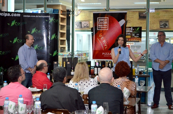 Márcio Eduardo Cavalaro, gerente administrativo da Cocipa, foi o anfitrião da noite. “Agradeço a vinda da Jane Pizzato, possibilitando estreitar essa relação com a Cocipa e o nosso público consumidor, em especial junto aos apreciadores de vinho”, disse. “Agradeço também a participação do público, para quem dirigimos essa ação e assim pôde conhecer um pouco mais sobre vinhos e espumantes”, completou.