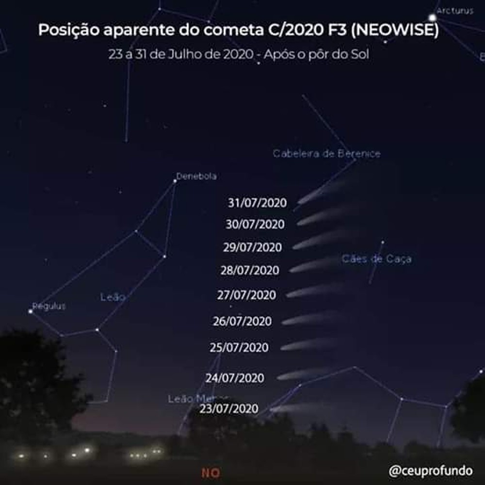 "As fotos obtidas lá mostram realmente um show do Neowise. Porém, para nós aqui do hemisfério Sul, ainda mais aqui na região sul e sudeste, ele não fará o mesmo espetáculo, pois já está se afastando do Sol e da Terra. A cada dia que passa ele fica mais longe e menos brilhante para nós", explica o pesquisador. (Continua após a publicidade...)
