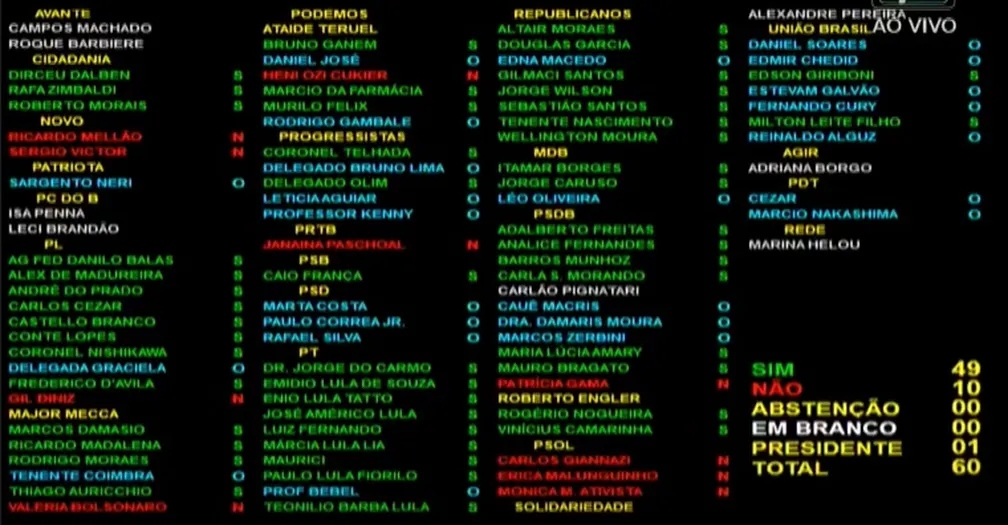Voto de cada deputado (Reprodução/Youtube/Alesp).