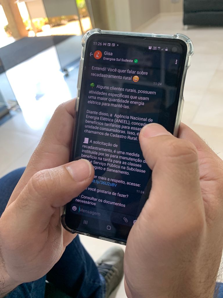 Para facilitar o processo, a Energisa Sul-Sudeste disponibiliza aos clientes a oportunidade de fazer o recadastramento sem sair de casa, por meio da Gisa (assistente virtual do Whatsapp), no número (18) 99120-3365. “O sistema é bem didático, prático e seguro. Com poucos cliques a pessoa consegue concluir o recadastramento sem precisar se deslocar até uma de nossas agências na área urbana”, garante Helber.