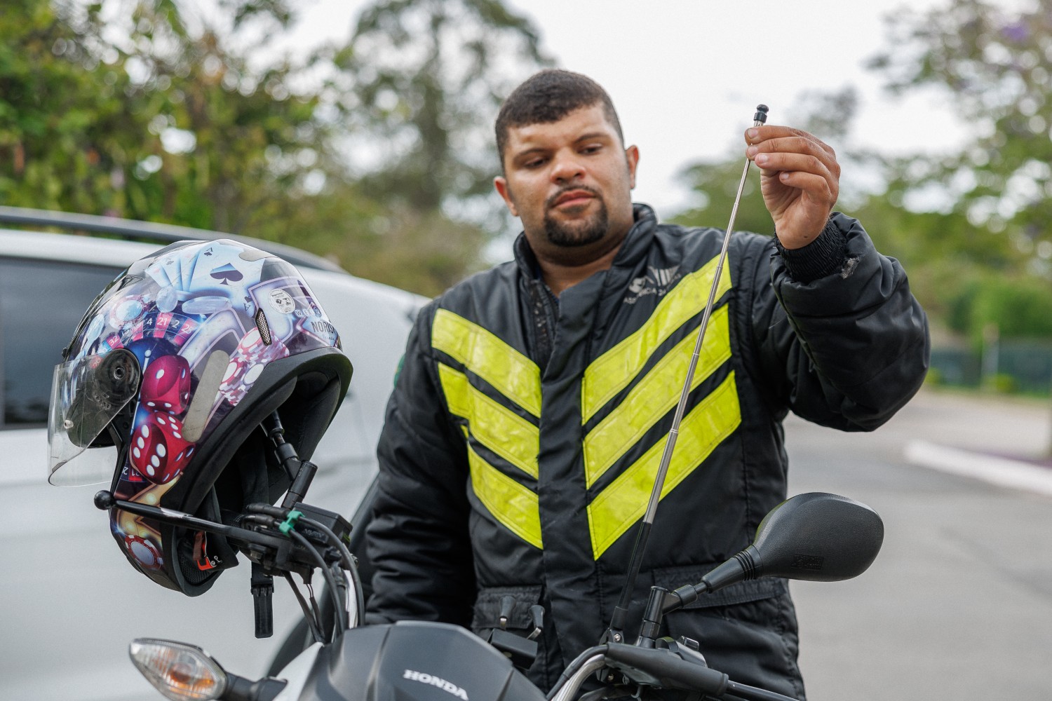 "O risco que a gente corre é constante. A lei está aí, é boa pra nossa segurança, mas é preciso conscientização das pessoas que ainda insistem em usar cerol", alertou o motoboy Edson de Oliveira, que vai instalar mais uma antena na moto para garantir que as linhas com cerol fiquem bem longe dele.