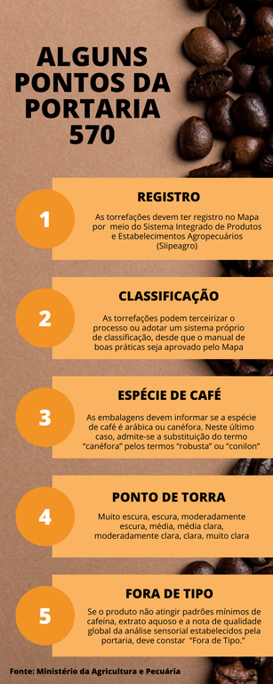 A Portaria 570 vai permitir que órgãos de defesa do consumidor possam atuar em denúncias de fraude no produto. As torrefações deverão se registrar junto ao Ministério da Agricultura por meio do Sistema Integrado de Produtos e Estabelecimentos Agropecuários (Sipeagro).