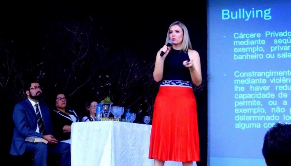 Já as palestras foram conduzidas por duas convidadas das Igreja Adventista. A primeira delas com a delegada da Polícia Civil Laíza Fernanda Rigatto Andrade, responsável pelo Necrim (Núcleo Especial Criminal), que expôs sobre cyberbullying (assédio virtual). Em seguida, na segunda palestra, a psicóloga Vanderliza Sgorlon falou sobre depressão e suicídio.