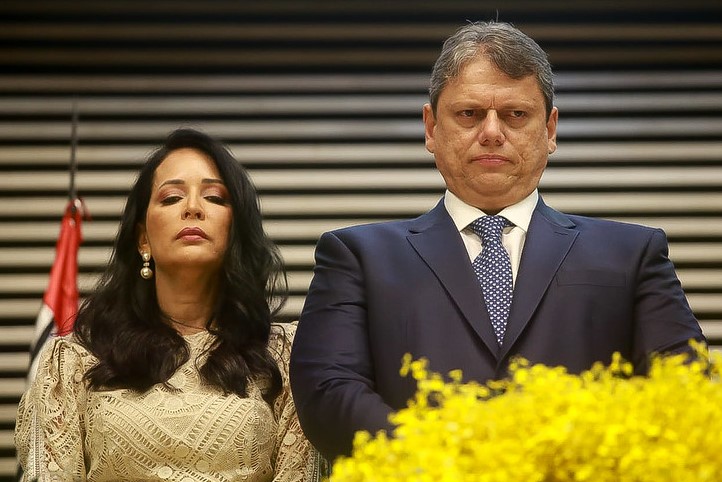 A primeira-dama Cristiane de Freitas e Tarcísio (Imagem: GovSP).