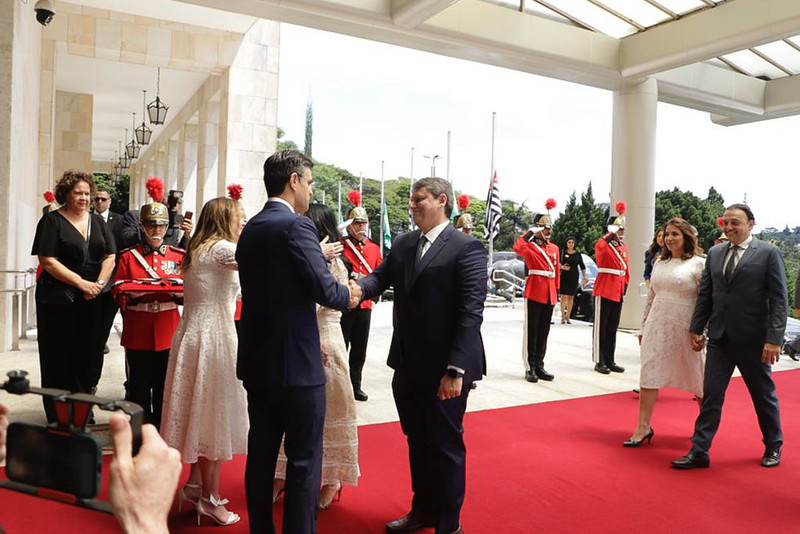 Após a posse na Assembleia Legislativa, o Governador Tarcísio de Freitas e o Vice-Governador Felício Ramuth participaram da cerimônia de passagem de cargos do Governo do Estado de São Paulo, no Palácio dos Bandeirantes. Eles foram recebidos pelo ex-governador Rodrigo Garcia, que fez a entrega de um pavilhão do Estado antes de deixar a sede do governo paulista, ao lado de sua esposa Luciana Garcia.