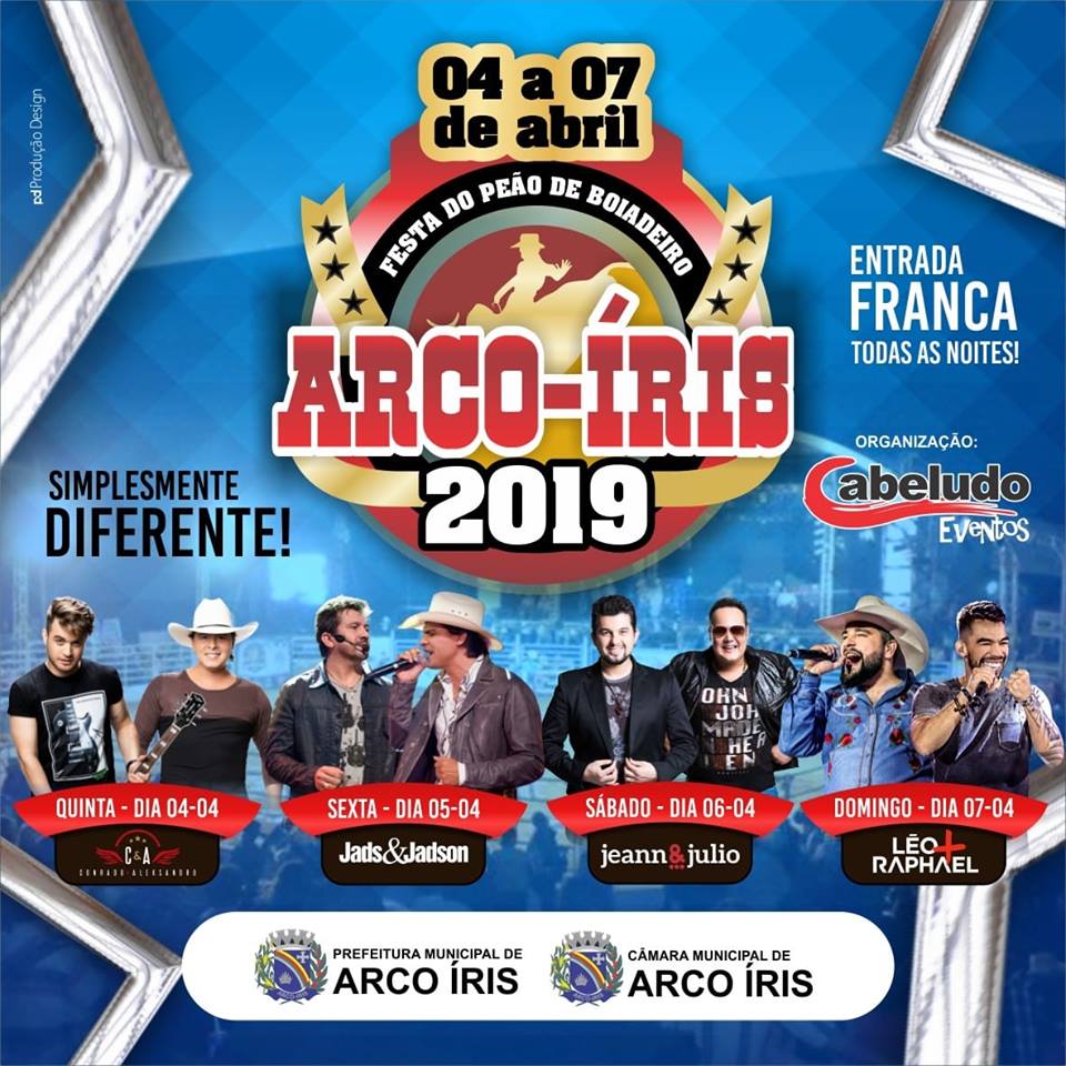 A cidade de Arco-Íris, na região de Tupã, promove a partir desta quinta-feira (4) sua 21ª Festa do Peão Boiadeiro. A programação segue até domingo (7), com shows, montarias e grandes atrações, todas as noites com entrada franca. A realização é da Prefeitura Municipal e Câmara Municipal, com organização da Cabeludo Eventos.