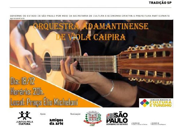 O Natal em Adamantina ficará ainda mais especial nesta semana. No dia 18 de dezembro (quarta-feira) às 20h, a Orquestra de Violas se apresentará na praça Élio Micheloni. Já no dia 19 de dezembro (quinta-feira) a apresentação fica por conta da Banda Marcial de Adamantina – BAMAD – às 20h30. (Continua após a publicidade...)