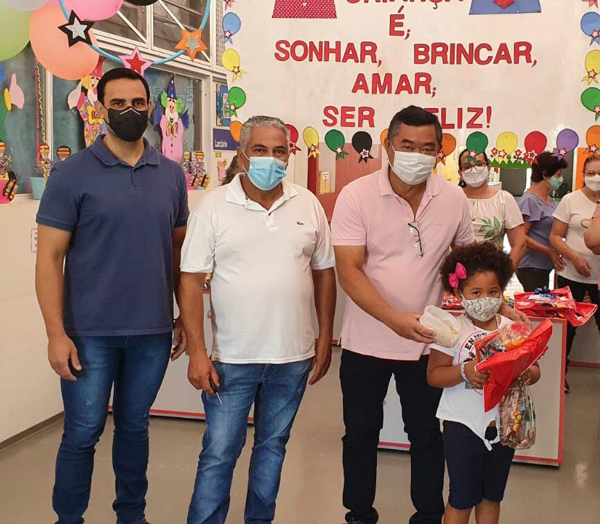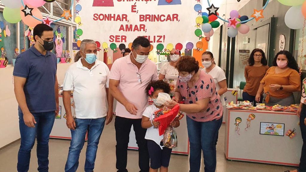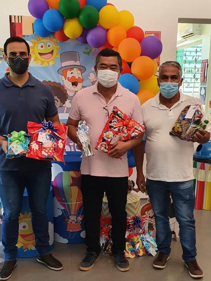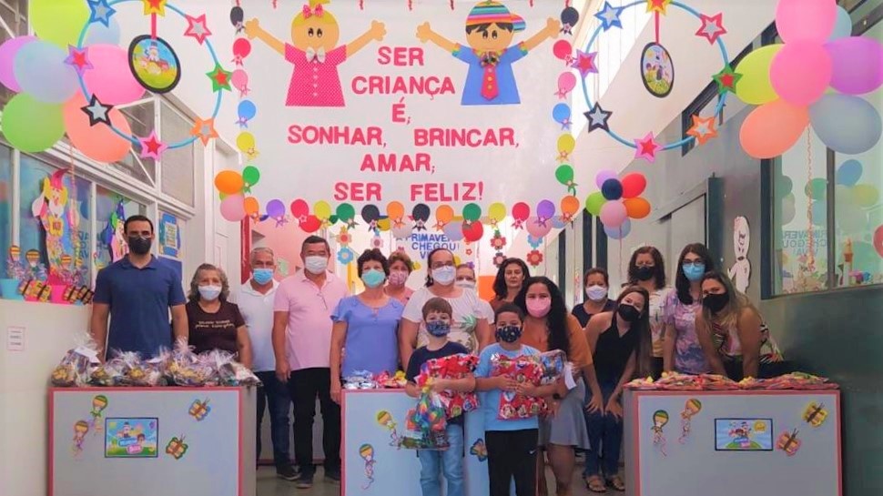 Na Creche Proinfância, as crianças do berçário I (6 meses a 1 ano) receberam chocalhos. As crianças do berçário II (1 e 2 anos) ganharam um balde didático. No maternal I (2 a 3 anos), balde didático. E para as crianças do maternal II (3 e 4 anos), bolinha de sabão, balde didático e boneca. Para as crianças da Creche Rute de Oliveira Casoti e Emef Nelson Magnani, as meninas receberam boneca e dominó e os meninos, raquete e dominó.