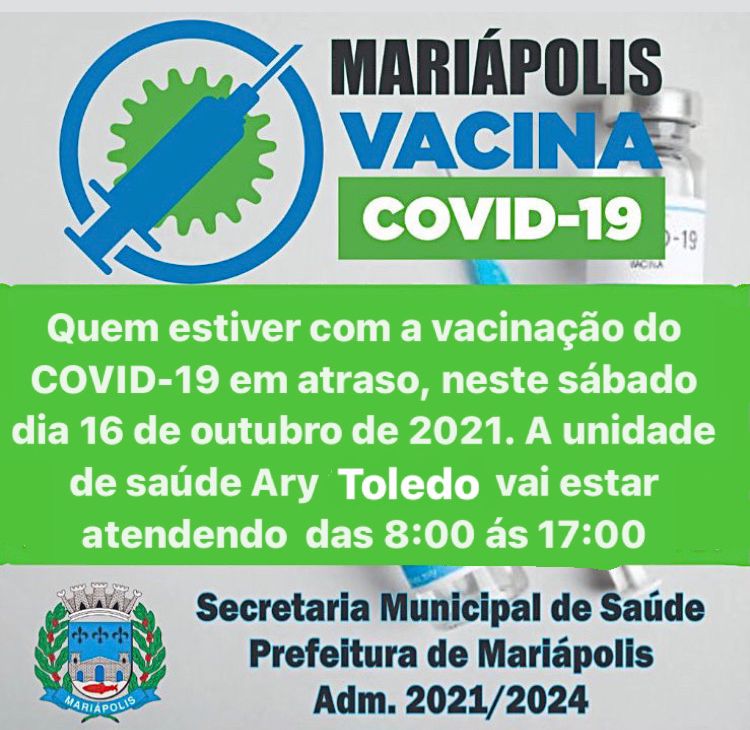 Para quem está com doses em atraso, na vacinação da Covid-19, o Posto de Saúde Ary Toledo da Silva (em frente à Praça da Matriz) irá atender neste sábado das 8 às 1h.