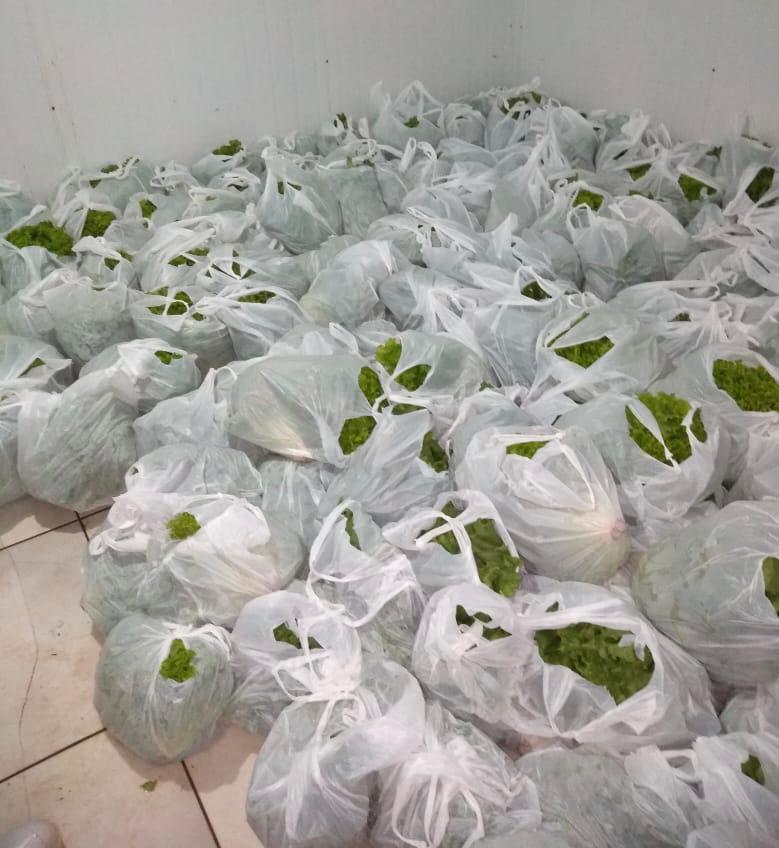 Os kits de alimentação escolar contêm arroz, feijão, macarrão, sal, açúcar, farinha de trigo, óleo, extrato de tomate e biscoito cream cracker, acompanhados dos kits de hortifrutis, formados por alface, tomate, babata inglesa e cebola, oriundos da agricultura familiar. (Continua após a publicidade...)